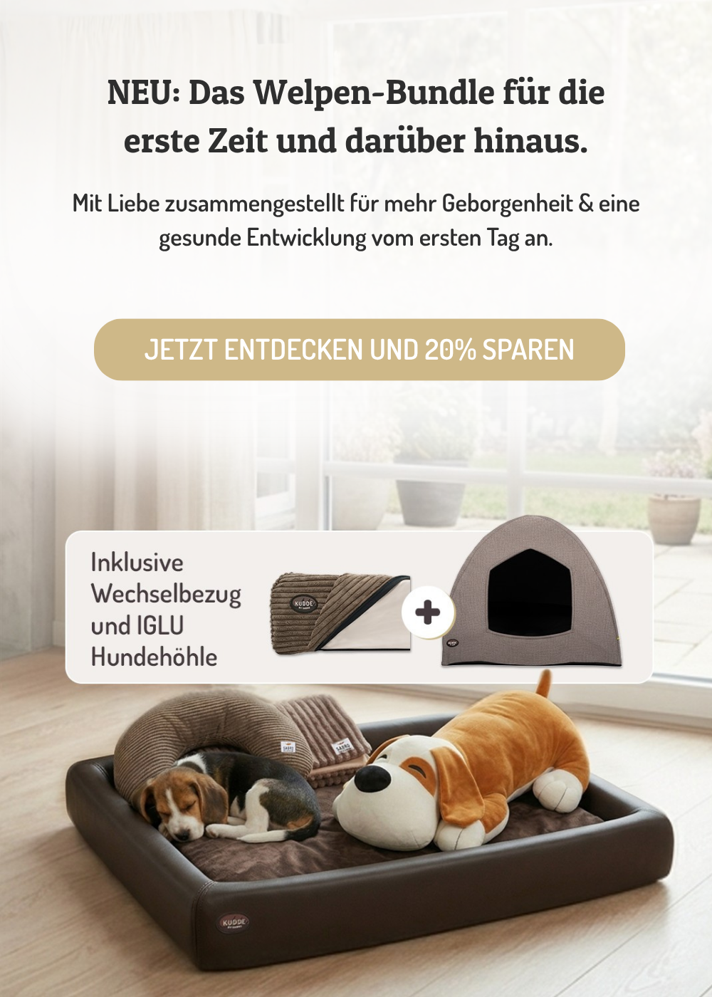 Das KUDDE Hundebett ist nicht nur langlebig und pflegeleicht, es hat auch einen formstabilen Kern aus viskoelastischem Schaumstoff. So schläft dein Hund natürlich und gesund.”